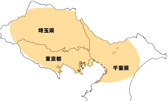 三郷市、八潮市、草加市、吉川市、松伏町、庄和町、杉戸町、宮代町、春日部市、越谷市、岩槻市、川口市、鳩ヶ谷市、さいたま市、蕨市、戸田市、和光市、朝霞市、所沢市、新座市、三芳町、志木市、富士見市、上尾市、蓮田市、伊奈町、菖蒲町、白岡町、久喜市、幸手市、栗橋町、大利根町、北川辺町、鷲宮町、加須市、羽生市、騎西町、川里村、行田市、熊谷市、吹上町、鴻巣市、北本市、桶川市、川越市、上福岡市、大井町、狭山市、入間市、江南町、大里村、滑川町、嵐山町、小川町、玉川村、都幾川村、越生町、毛呂山町、吉見町、川島町、東松山市、坂戸市、鶴ヶ島市、日高市、鳩山町